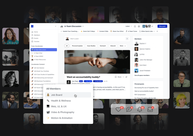 Access courses and downloadable templates crafted by industry experts to accelerate your business and creative growth